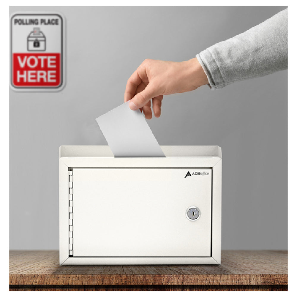 Alpine Industries ADI631-02-WHI 9-8/10 Inch Suggestion Box Wall Mountable with Key and Lock White Finish