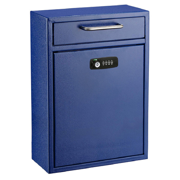 The Alpine Industries ADI631-04-BLU-KC mailbox features a height of 16.2", width of 11.2", and depth of 4.7". Constructed from high-quality metals with a blue exterior finish, it weighs approximately 2.53 lbs, ensuring sturdy installation while remaining lightweight for ease of handling. Its metal surface provides resistance to corrosion and environmental exposure, supporting prolonged use in various operational environments. The lock systems include both key and combo options, offering multiple access control methods. Designed primarily for wall mounting, the unit is compatible with standard installation requirements, with a typical shipping timeframe of 1 to 2 days.