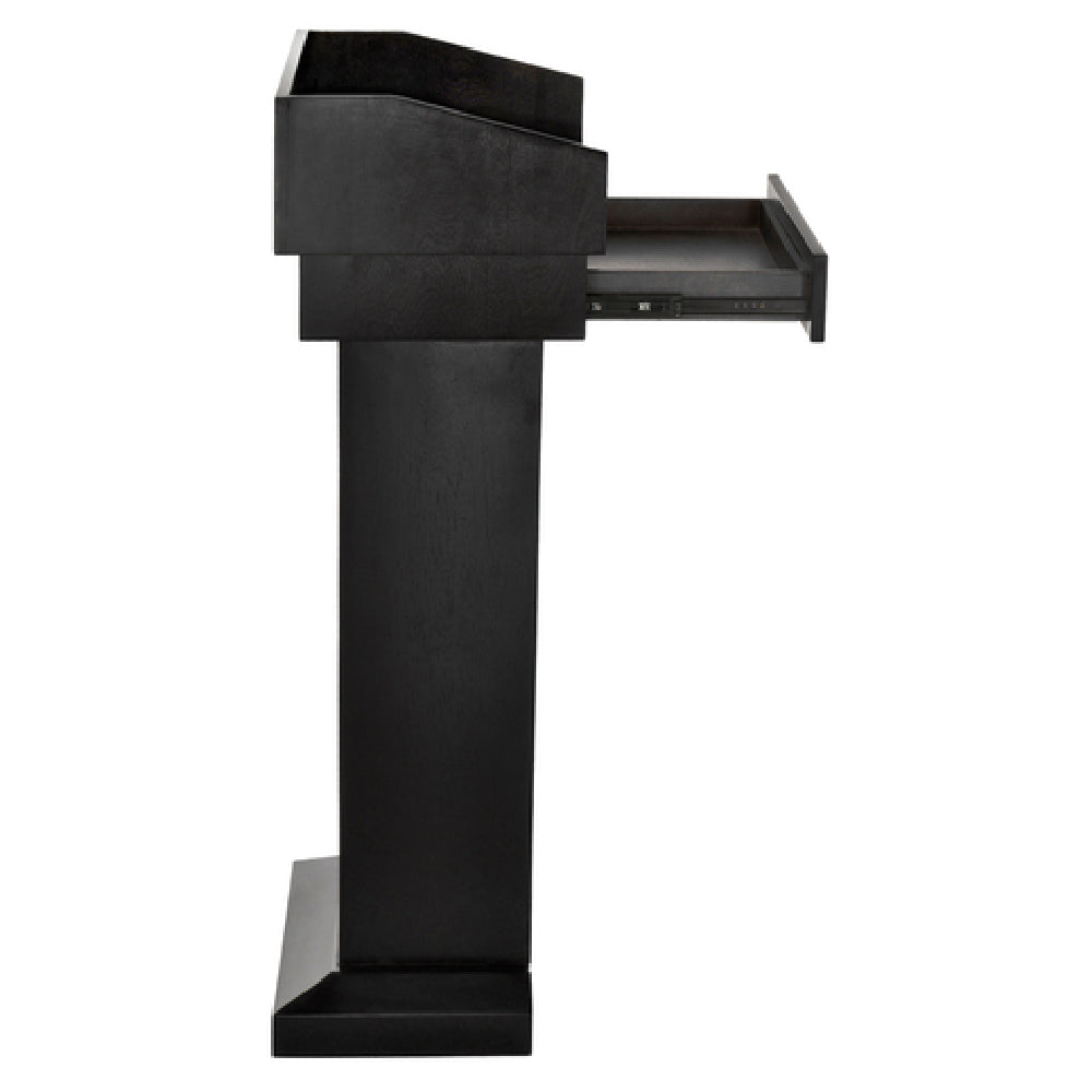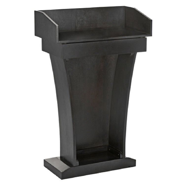 The ADI661-012-BLK podium lectern provides a sturdy standing platform with an integrated storage drawer, facilitating seamless presentation and organization in busy conference environments. Its wood construction with a durable black finish ensures longevity and aesthetic appeal for high-use settings. Designed for ease of cleaning and maintenance, it offers stable, floor-mounted support for diverse speaking engagements, supporting efficient workflows in professional venues and educational institutions. The integrated drawer allows quick access to documents, promoting smooth presentation transitions and operational reliability.