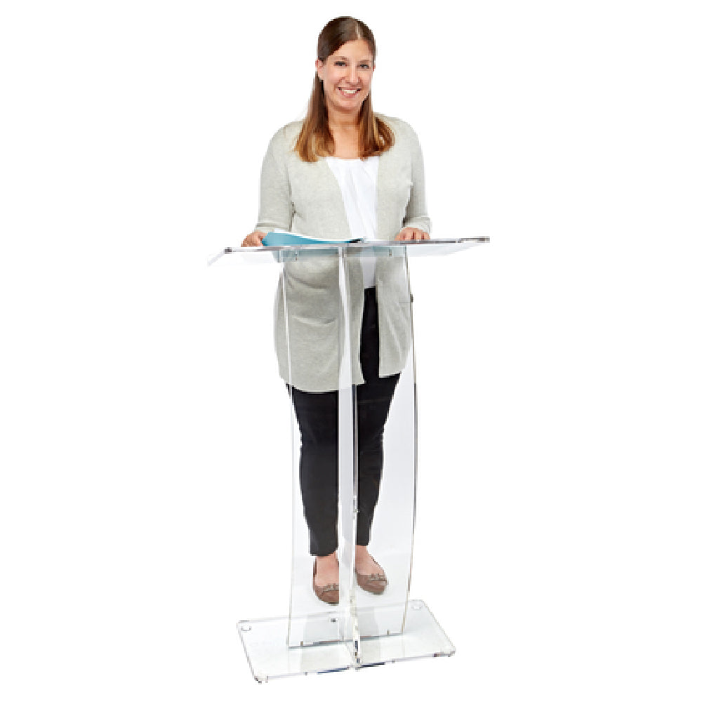 The Alpine Industries ADI661-03-CLR Speakers Podium Lectern excels in supporting high-quality presentations with its floor-standing, slanted acrylic surface that provides a clear viewing and writing angle. Its curved base ensures robust stability, while the lightweight yet durable acrylic material allows easy relocation and maintenance. Designed for use in lecture halls, conference rooms, and training facilities, it accommodates multimedia integration and facilitates smooth workflow in busy commercial settings.