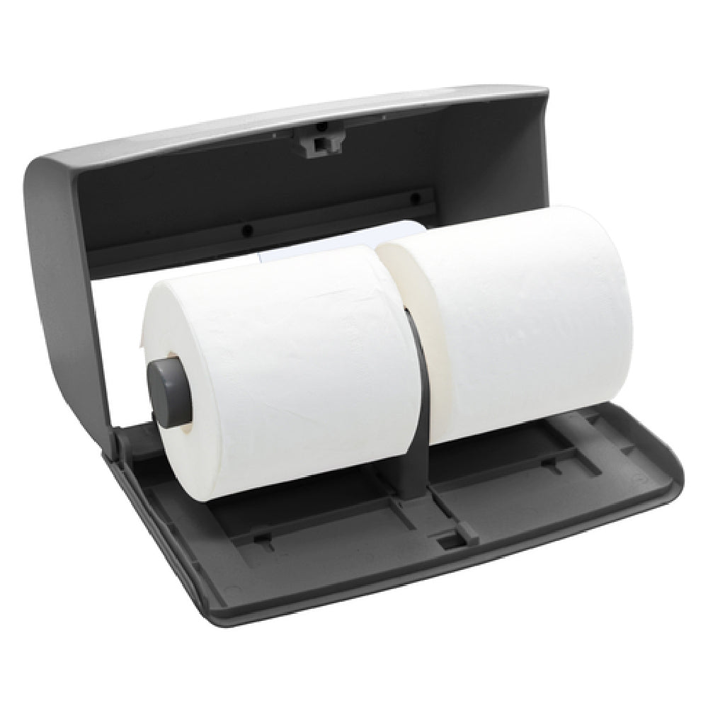 The ALP452-GRY toilet tissue dispenser provides reliable, high-volume capacity with a double roll setup, ideal for fast-paced commercial restrooms. Its surface-mount design ensures straightforward installation, while ABS plastic construction guarantees durability. The lock feature minimizes theft and tampering, and the transfer paddle simplifies paper feeding during high-traffic periods. Its oblong shape allows optimal space utilization in tight restroom areas, supporting efficient workflow and hygiene standards.