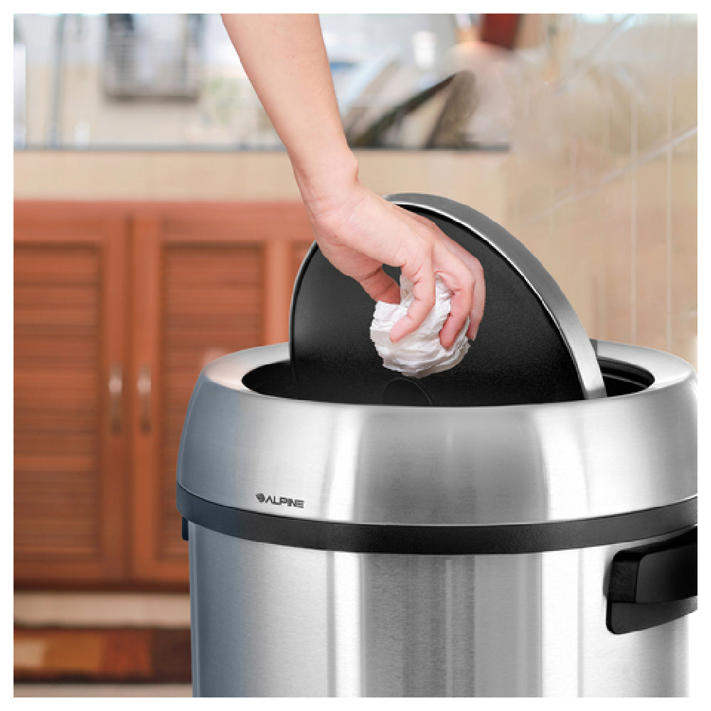 Alpine Industries ALP470-65L-1 17 Gallon Trash Can Stainless Steel Brushed Finish with Lift Off Lid