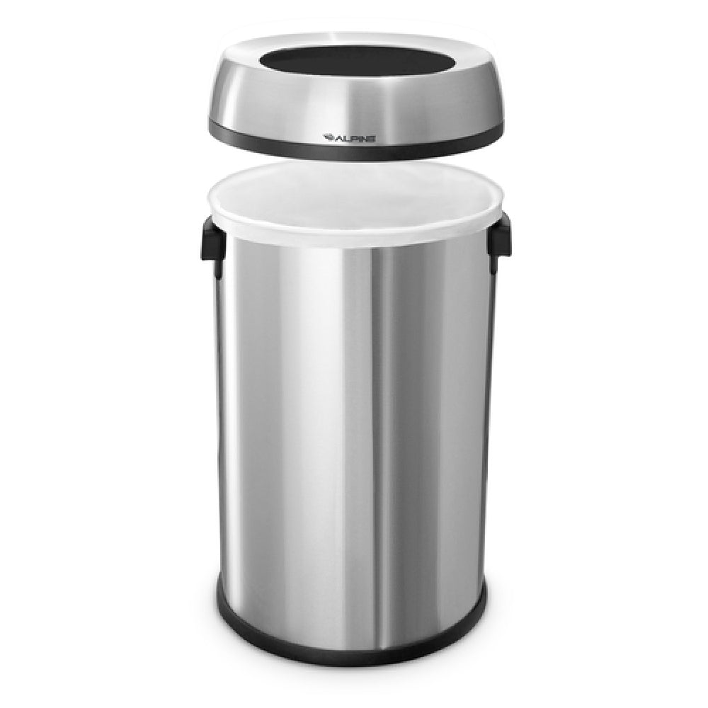 The Alpine Industries ALP470-65L Trash Can offers a robust stainless steel body with a smudge-resistant brushed finish, ideal for demanding foodservice environments. Its open-top and lift-off lid design streamline waste handling, complemented by side handles for easy mobility. The non-skid base ensures stability on various surfaces, supporting safe and efficient operations in commercial kitchens and dining areas. Designed for medium-volume workloads, it integrates seamlessly into high-traffic foodservice workflows with durable materials and precise dimensions for space-efficient waste disposal.