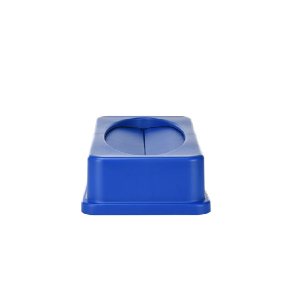 A commercial trash receptacle lid is a durable, sanitary cover designed to fit waste bins used in professional foodservice and institutional settings. It provides a secure, hygienic seal for waste containment, often featuring practical openings such as drop shot designs for quick waste disposal. These lids are made from impact-resistant plastics like polypropylene and polystyrene to withstand frequent handling, cleaning, and exposure to spills. Installed in environments like cafeterias, kitchens, and cleaning stations, the ALP478-2-BLU fits specific receptacle dimensions and supports efficient waste management workflows, ensuring cleanliness and operational efficiency in medium-volume foodservice applications.