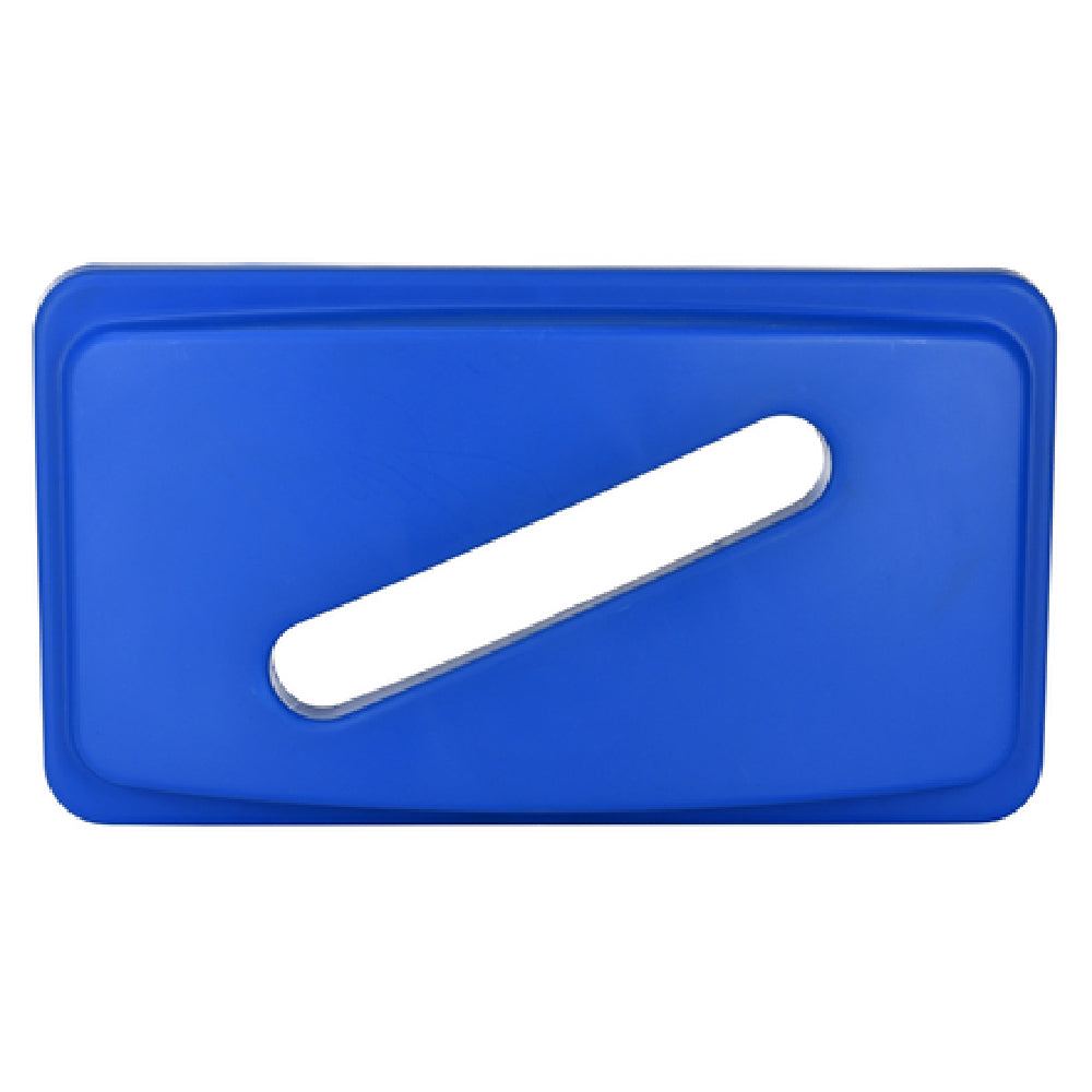 The ALP478-4-BLU paper recycling lid features a polypropylene construction with a 22"W x 12"D x 2-9/10"H dimension, designed for high-volume waste management in foodservice settings. Its slip-resistant surface and sturdy material offer durability against daily handling, while easy-to-clean surfaces streamline maintenance. Ideal for large-scale recycling bins, its precise fit enhances workflow efficiency by simplifying waste sorting and disposal, minimizing contamination potential, and supporting sanitation practices in commercial kitchens and refreshment stations.