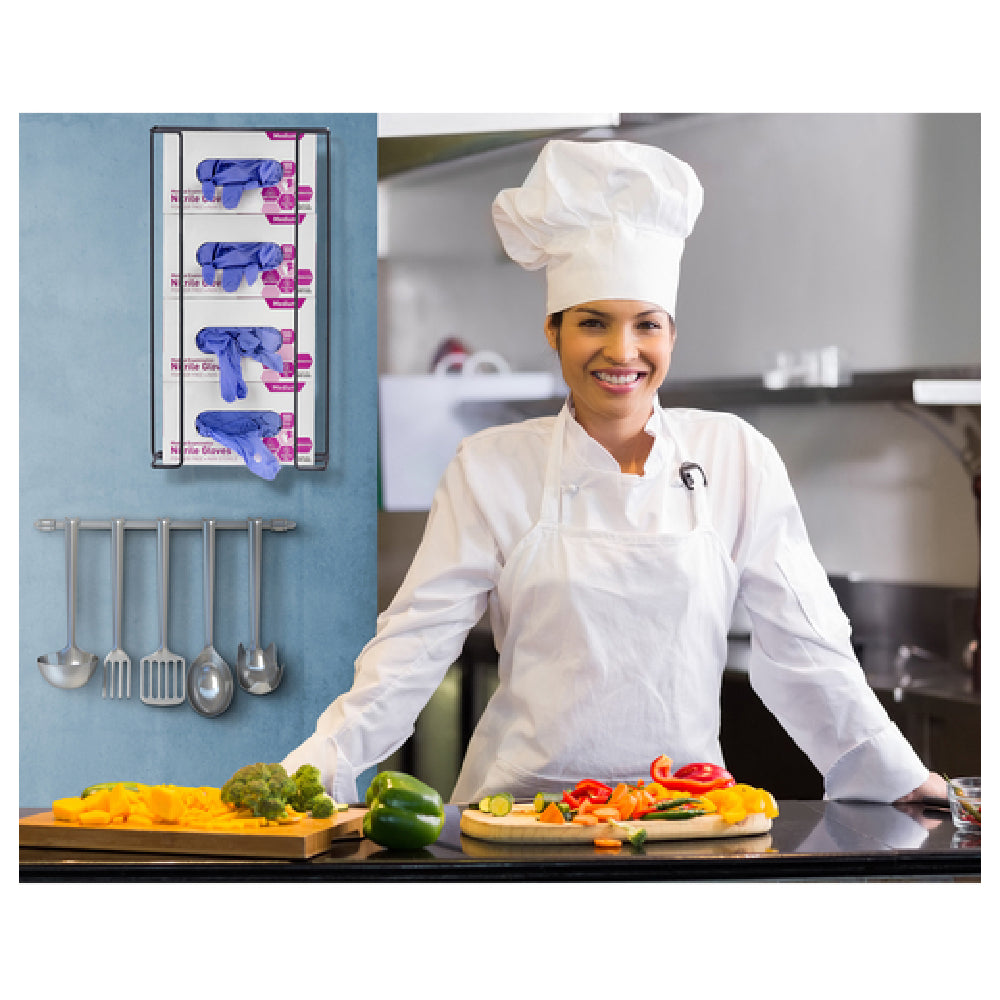 Ideal for high-traffic food prep areas or medical stations requiring organized glove dispensing.