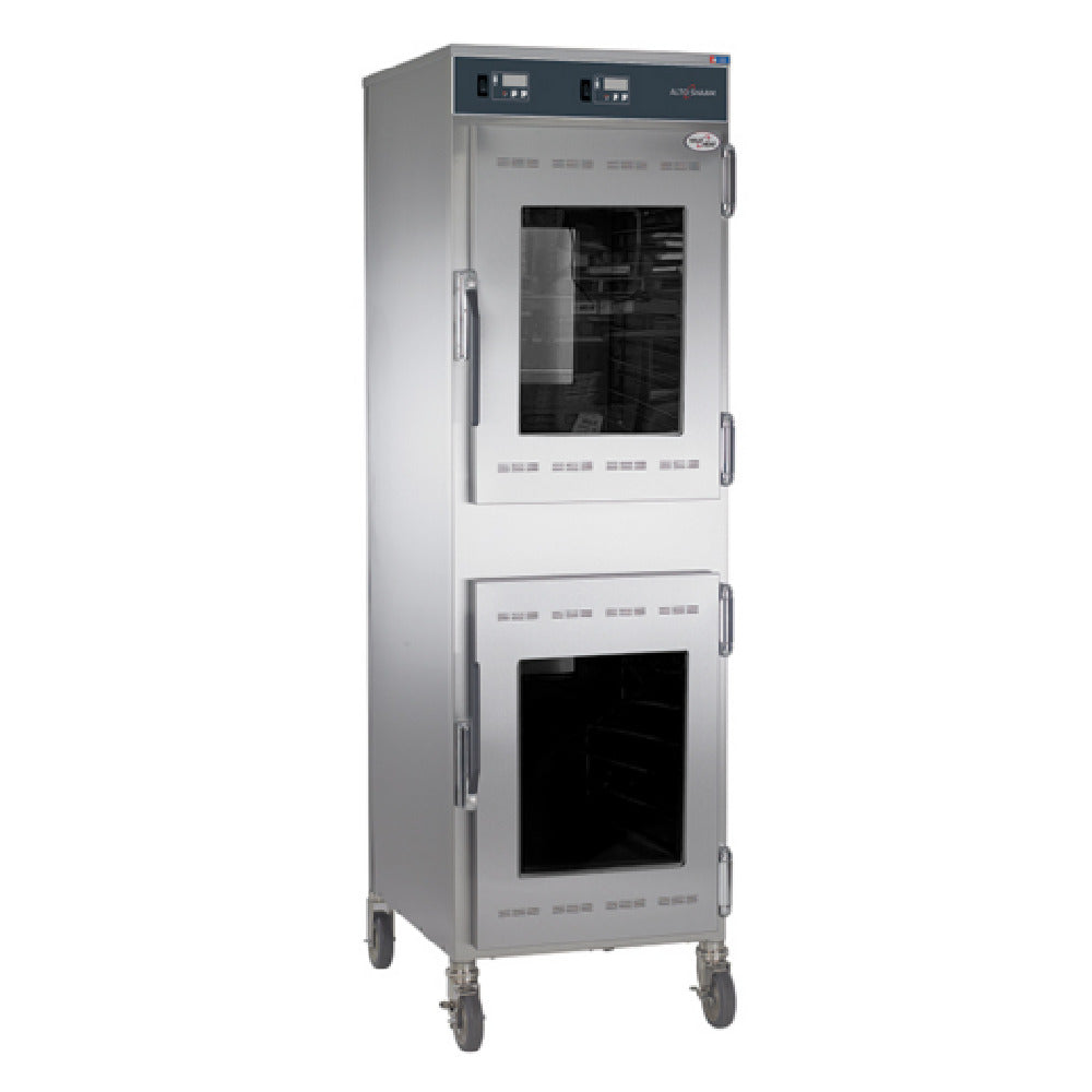 The Alto Shaam 1000-UP/P_208-240/60/1 Halo Heat® Proofing Cabinet Mobile Double-compartment is a commercial-grade mobile proofing solution designed for precise temperature control and reliable performance in professional kitchens and foodservice environments. It features a double-compartment configuration with each holding up to (8) 18" x 26" sheet pans, making it ideal for high-volume proofing, holding, or slow-cooking applications. Constructed with heavy-duty stainless steel exterior and interior, it offers durability and ease of maintenance. The unit includes insulated walls for consistent proofing conditions, full-height stainless steel hinged doors with window access, and adjustable thermostats for precise temperature regulation. Its mobility is facilitated by heavy-duty 5" casters—comprising 2 rigid and 2 swivel with brakes—enabling flexible placement within commercial kitchens. The Halo Heat® technology employs gentle, consistent heat transfer, reducing drying and overheating risks while providing energy-efficient proofing capabilities at 208-240V, 60Hz, single-phase power. With a capacity designed for versatile proofing workflows, it supports high-volume foodservice operations requiring dependable and efficient proofing solutions.