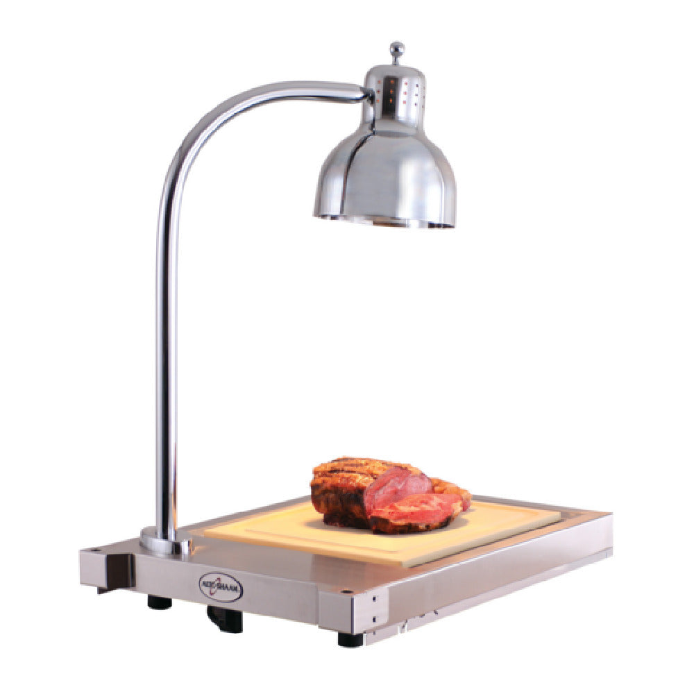 The Alto Shaam CS-100_230/60/1 hot carving shelf offers a built-in infrared lamp for consistent heating, a three-position toggle switch for heat control, and a recessed stainless steel surface for easy cleaning and maintenance. Its robust construction ensures durability in demanding kitchen environments, while the fixed arm design provides stability during operation. The inclusion of a cutting board enhances workflow efficiency during carving and serving, making it an essential component for culinary professionals. The unit’s design supports seamless integration into countertop setups, facilitating efficient food presentation and portion control in busy foodservice operations.