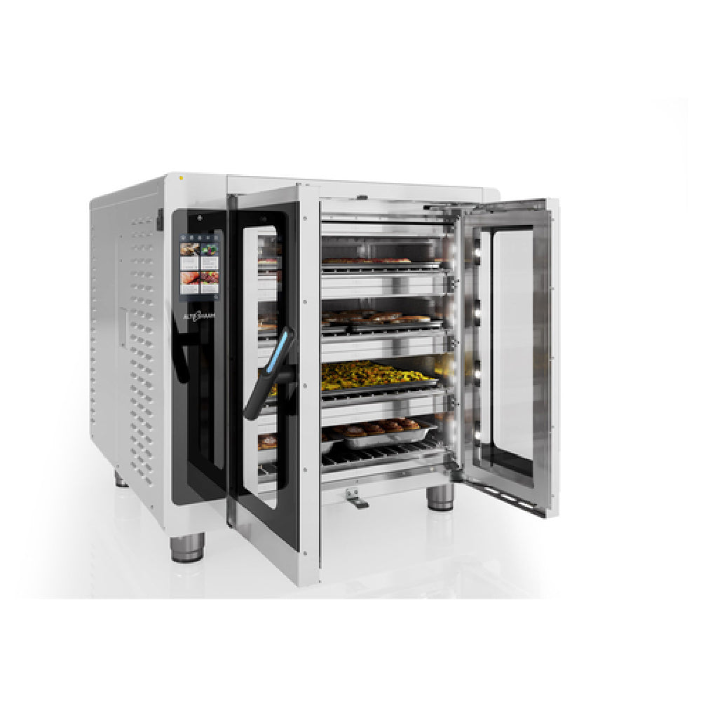 A commercial multi-cook oven is specialized kitchen equipment designed to perform multiple cooking functions such as baking, roasting, or steaming within a single unit, optimized for high-volume food production environments. The Alto Shaam VMC-F4E exemplifies this category with four independently controlled chambers, programmable controls, and Structured Air Technology® that ensure uniform heat distribution. Installed in restaurant, cafeteria, or institutional kitchens, this oven streamlines multiple cooking processes, reducing equipment footprint and increasing throughput in mid-volume foodservice settings.