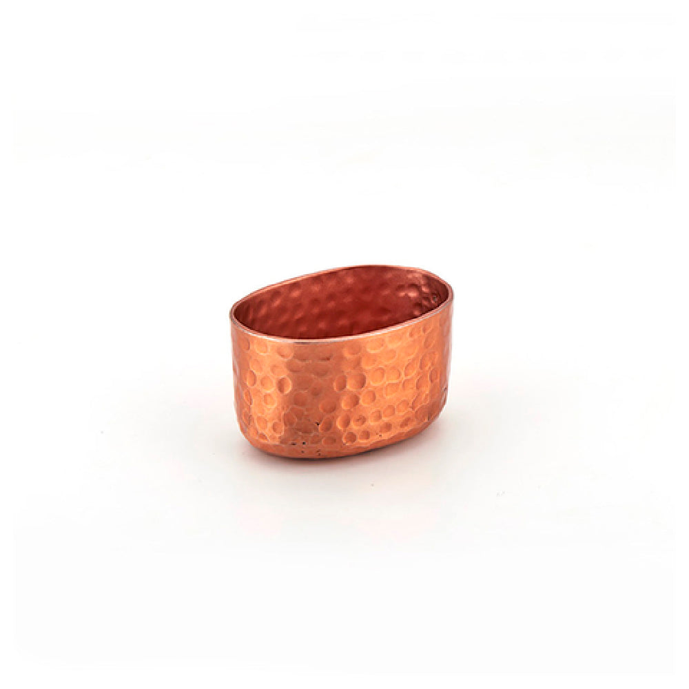 This sugar packet holder is engineered for commercial foodservice with its hammered aluminum construction offering durability against daily handling. Its 6 oz. capacity efficiently manages typical sugar packet supplies, while the oval shape facilitates easy access and organization. The copper finish imparts an attractive visual appeal ideal for stylish beverage stations. Easy to clean by hand wash-only process, the unit integrates seamlessly into countertop setups for high-volume service workflows, supporting quick replenishment and maintaining presentation standards.