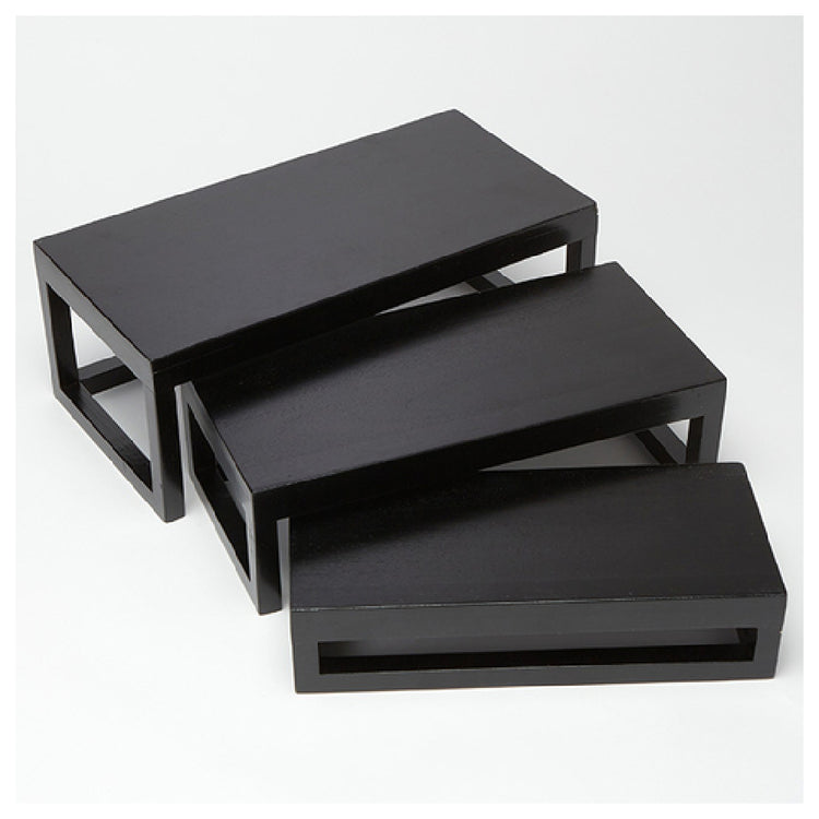 American Metalcraft AWRRP 16 Inch Rectangular Wood Riser Set Black - 4/Set