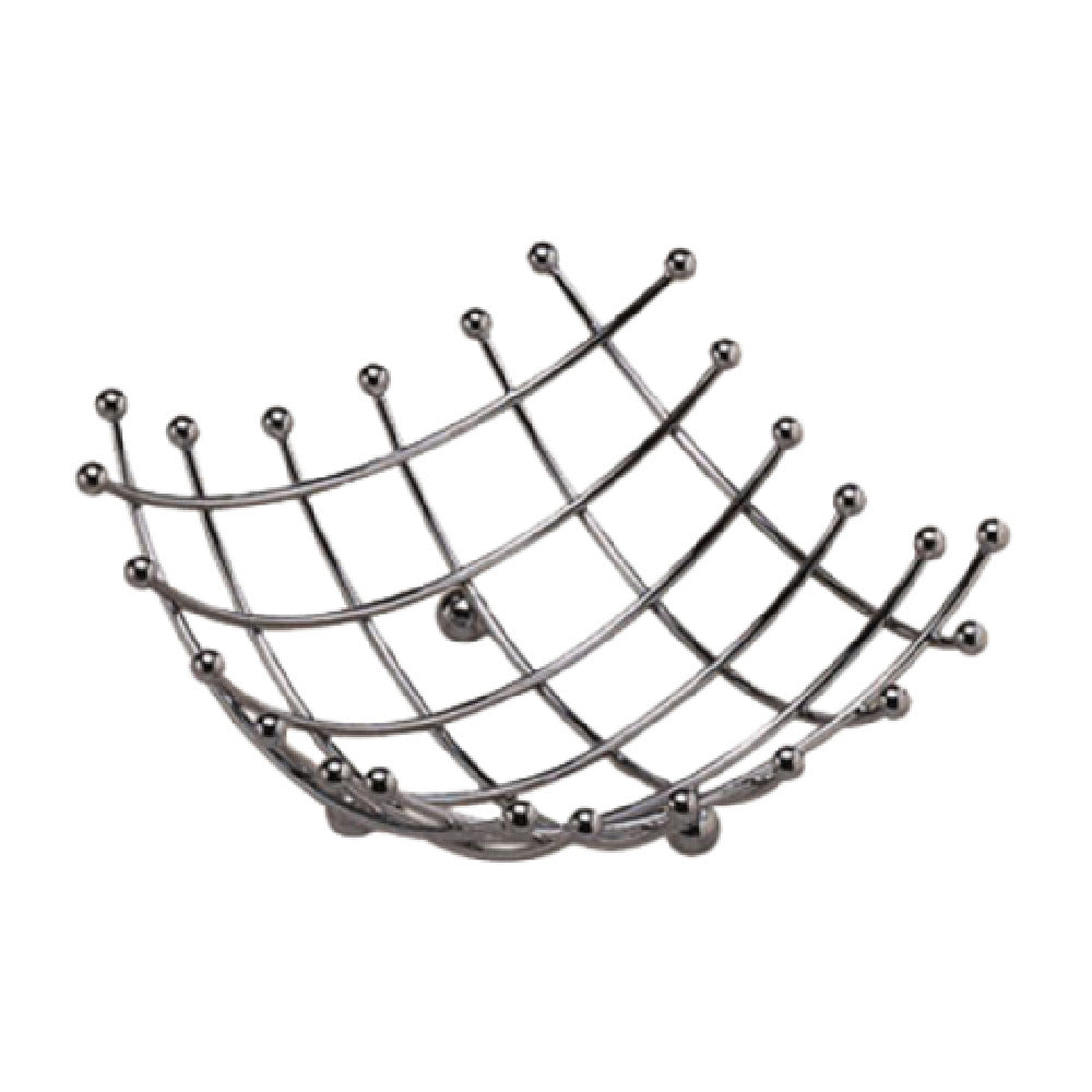 A commercial metal basket is a durable, steel or chrome-plated container designed for food presentation and serving in professional foodservice settings. These baskets often feature attractive patterns, such as checkerboard designs, with ergonomic tips to facilitate handling and grip. The American Metalcraft BAS1 space/time continuum basket exemplifies this category with its steel construction, compact 8-inch square size, and stylish checker pattern. Primarily used for serving bread, small snacks, or garnishes, such baskets are installed on countertops in cafes, buffets, or catering environments to combine functionality with aesthetic appeal, supporting efficient and organized foodservice workflows.