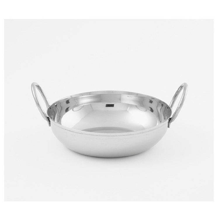 The American Metalcraft BD55 Balti Dish offers a 7-ounce capacity in a polished stainless steel construction, optimized for high-volume food presentation. Its corrosion-resistant material ensures longevity in busy kitchen environments, while the mirror finish facilitates quick cleaning. Designed with handles, it allows for simple maneuvering during serving and refilling processes. Ideal for kitchen stations that require durable, hygienic presentationware, this round dish supports efficient portioning and service workflows, especially in casual or buffet-style settings.