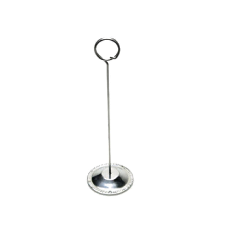 The American Metalcraft CH8 Card Holder is a commercial-grade menu card stand designed for professional foodservice environments. Measuring 2-5/8 inches in diameter and standing 8 inches tall, this stainless steel number stand features a polished finish and a wire loop clip for secure card display. Its weighted base ensures stability during daily operations, making it suitable for tabletop use in restaurants, cafes, and hospitality settings requiring durable, corrosion-resistant signage support. The precise dimensions and premium materials facilitate seamless integration into busy service workflows without compromise on presentation clarity or ease of maintenance.