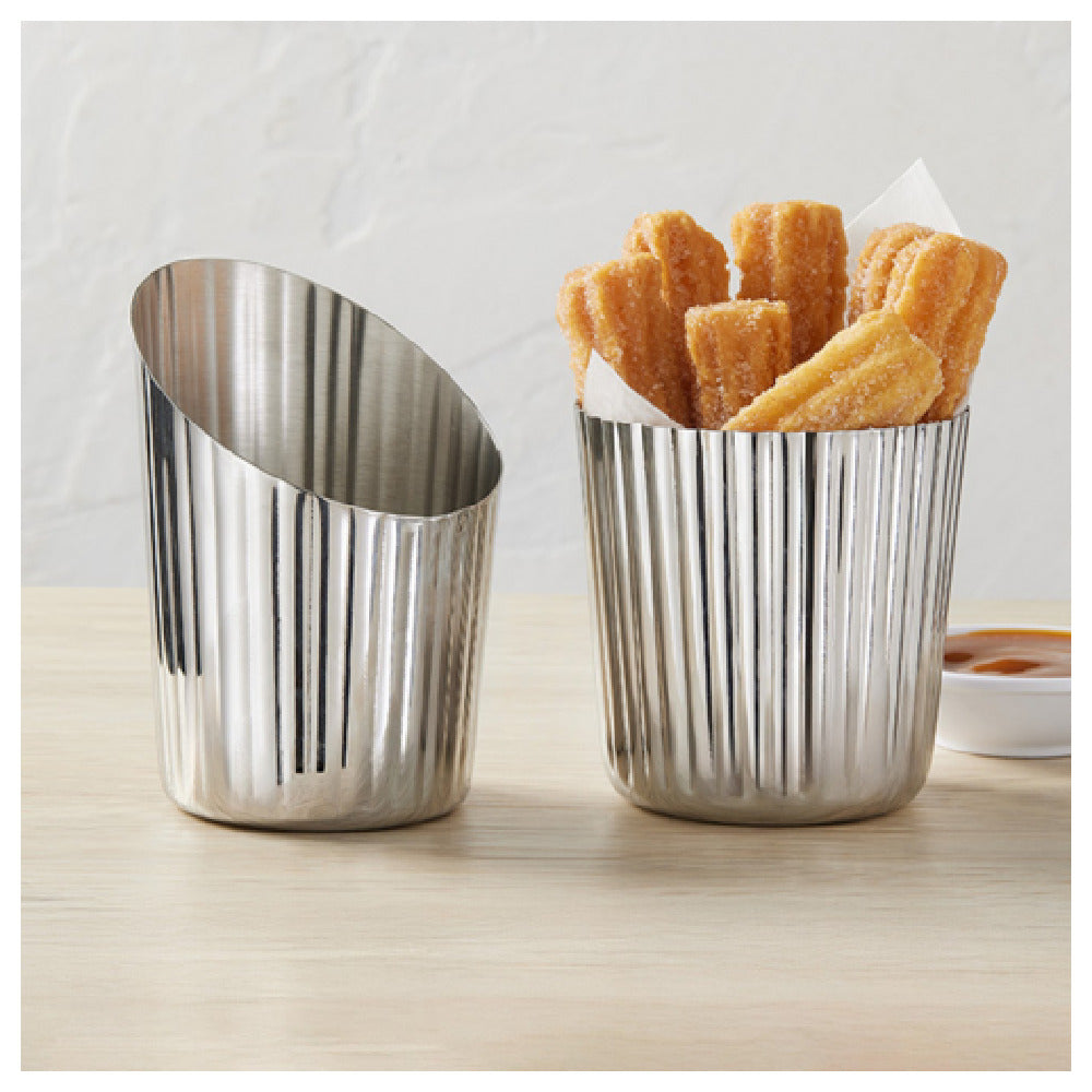 Why Choose American Metalcraft FFFL37 Fry Cup Stainless Steel Fluted? Its premium stainless steel construction provides long-term durability and corrosion resistance, while the fluted exterior enhances presentation. Its compact footprint suits a variety of fry stations and display setups, streamlining service flows and reducing maintenance time, making it a reliable addition to any commercial kitchen focused on fried food presentation.