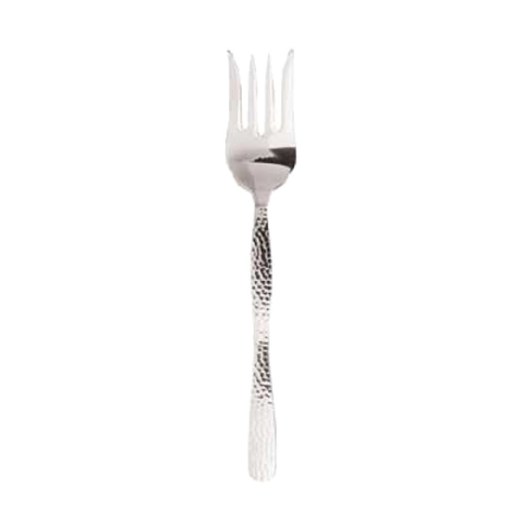 The American Metalcraft HM11CMF Buffet Ware Cold Meat Fork features a 11-inch length with a stainless steel construction that ensures longevity and resistance to corrosion. Its hammered handle design improves grip and aesthetic appeal, while the lightweight build at 0.29 lbs facilitates easy handling by staff. The fork has a blade width of 11 inches, matching typical serving requirements for cold meats and roasts. Its surface finish is polished for easy cleaning, compatible with commercial dishwasher protocols. This model does not include any certification marks but adheres to industry standards for safety and sanitation. The compact design fits into standard serving sets, with dimensions optimized for buffet lines and banquet service. Designed to operate within typical kitchen conditions, it is suitable for use in environments requiring frequent sanitation and high hygiene standards.