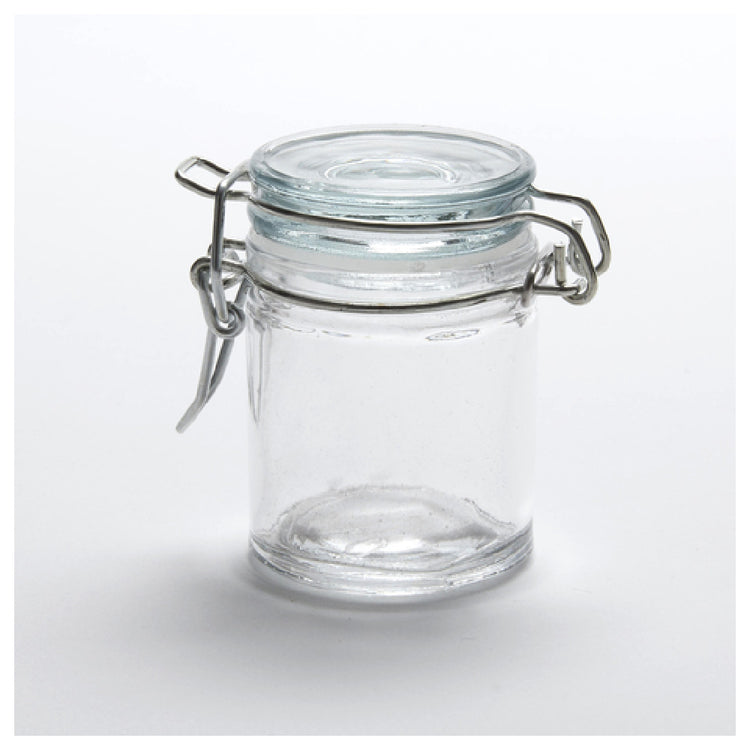 The HMMJ1 Mason Jar is constructed from high-quality glass with a height of 2.5 inches, a diameter of 1.75 inches, and a weight of approximately 0.28 lbs. Its hinged lid provides an airtight seal for freshness, while the overall dimensions support efficient stacking and storage within compact spaces. The jar is designed to withstand typical handling in busy foodservice environments, although it does not specify specific temperature ranges or antimicrobial coatings. It is a non-certified product suitable for ingredient portioning and display in environments prioritizing visual appeal and ease of access. The jar's simple disassembly makes cleaning straightforward, supporting hygiene standards in food presentation settings.