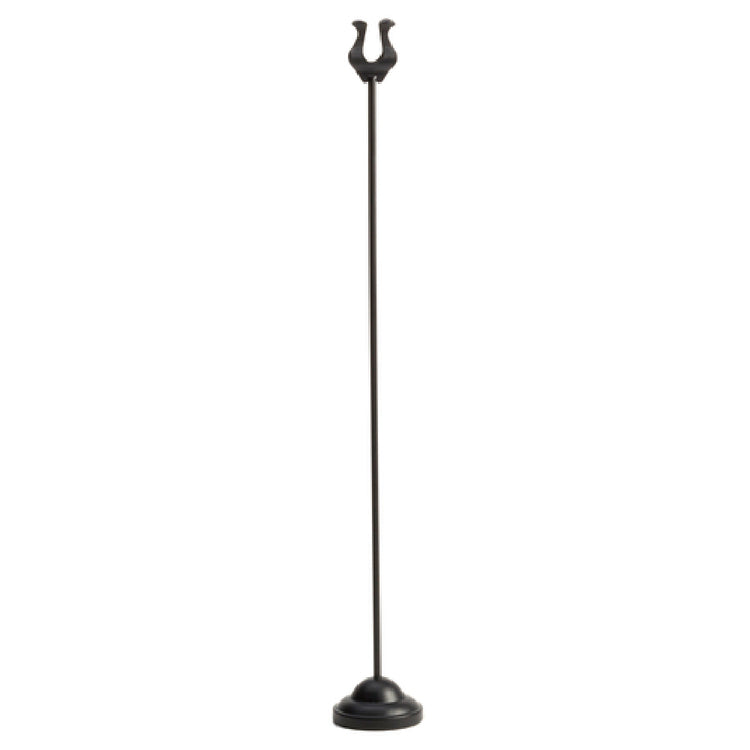 The HPBL18 number stand excels in commercial environments by offering a sturdy metal construction with a rounded weighted base for stability. Its harp clip securely holds menu cards or numbers, allowing quick swaps for dynamic displays. Designed for ease of cleaning and durability, it withstands frequent handling in busy foodservice operations. Its 18-inch height comfortably elevates signage for visibility on restaurant tables or service counters. The compact 2-1/4” diameter ensures unobtrusive placement without cluttering tabletops.