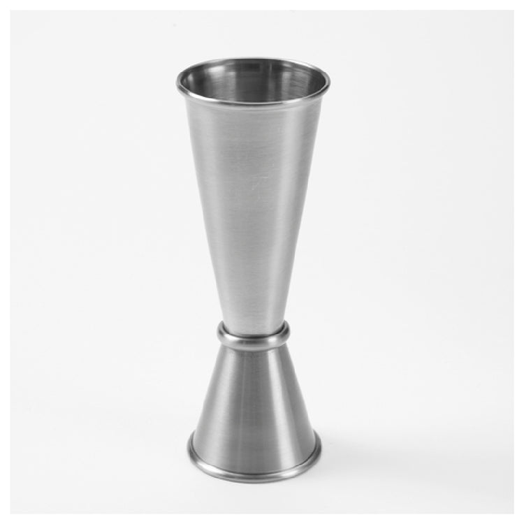 The American Metalcraft JG5 jigger features precision stainless steel construction optimized for longevity in commercial environments. Its 1 oz. and 2 oz. measurement capacity with a 4-3/4" height and 1-3/4" diameter allows for accurate portioning in high-volume beverage production. It operates without electrical requirements, emphasizing mechanical durability and ease of cleaning, with a satin finish that resists corrosion. The unit weighs approximately 0.15 lbs, making it lightweight yet sturdy for frequent handling. Its design is compatible with standard dishwashers, facilitating quick sanitation. The jigger's dimensions and construction enable it to withstand daily commercial use, ensuring consistent performance for bartenders and beverage professionals. Its versatile size and measurement precision make it ideal for applications such as busy bar stations, catering setups, and hospitality environments.