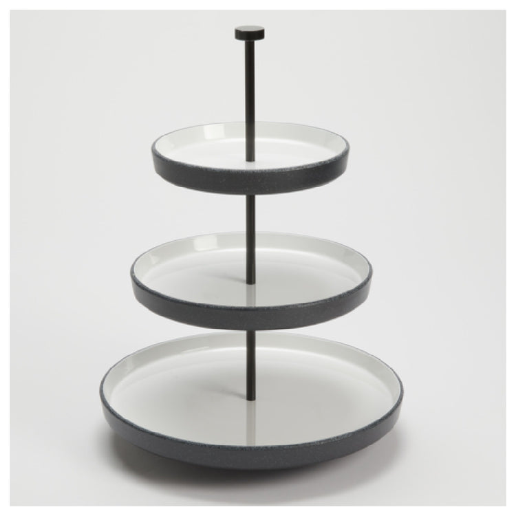 American Metalcraft LFTTSB17 12 Inch 3 Tier Display Stand Melamine White with Black Speckles