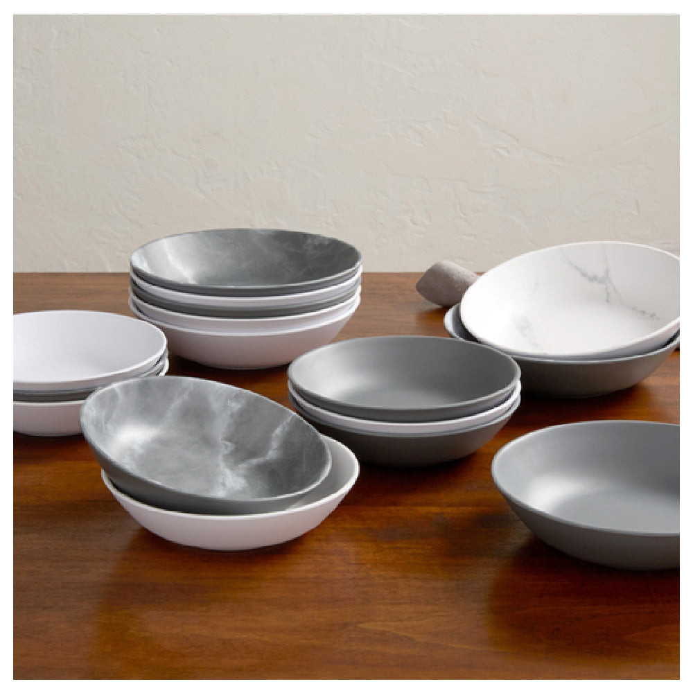 A commercial melamine bowl is a durable, impact-resistant dish made from synthetic polymer material designed for high-volume foodservice environments. It provides a lightweight, break-resistant substitute for ceramicware, ideal for serving salads, sides, or prepared foods in restaurants, buffets, and catering operations. The American Metalcraft MCB16GR bowl offers a 16 oz. capacity, a round shape, and a modern matte gray finish, making it suitable for high-frequency use in busy hospitality settings such as cafeterias and self-service stations, especially where durability and ease of cleaning are priorities.