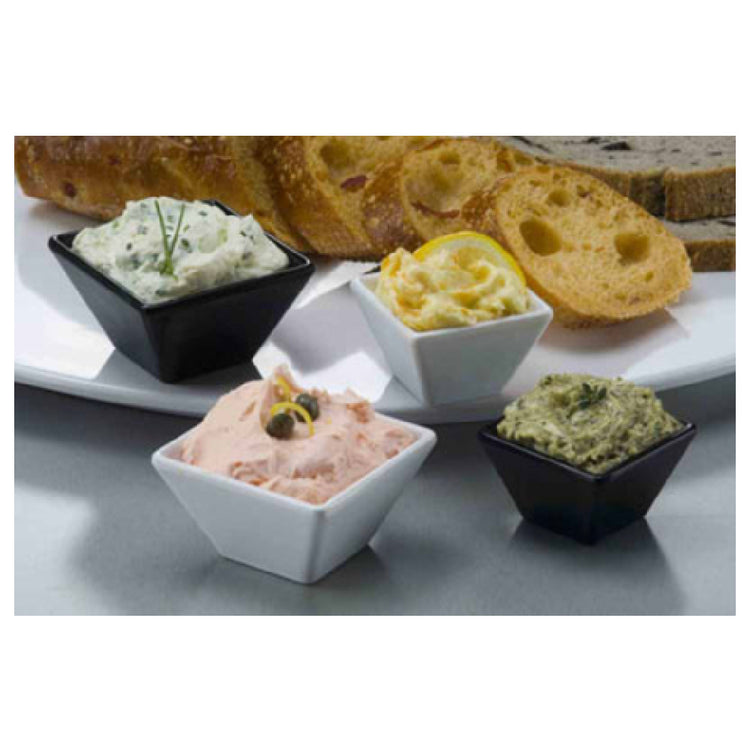 The MELSC20 sauce cup offers a resilient melamine construction with a 2-1/2 oz. capacity, ideal for condiment and sauce service. Its square shape maximizes space efficiency, and the lightweight design simplifies handling for staff during plating and portioning. The product's durable material withstands rigorous cleaning routines and frequent use in commercial settings, while its compact dimensions facilitate seamless integration into prep lines and serving stations. Designed for moderate throughput foodservice operations, it supports efficient workflow and consistent presentation.