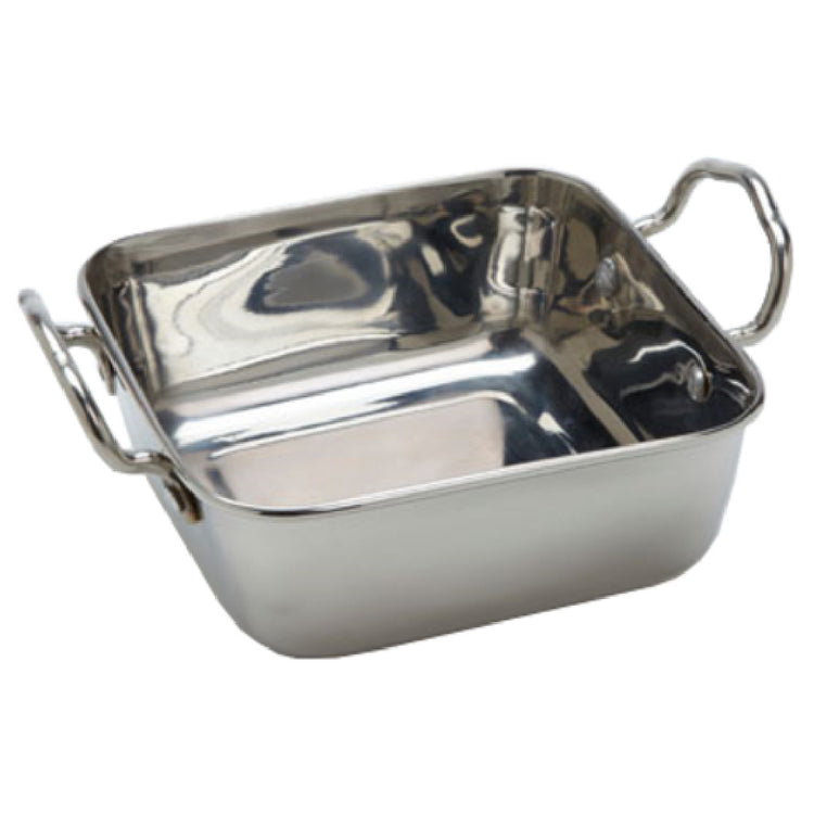 Compared to similar small roasting pans, the American Metalcraft MRPS55 offers robust stainless steel construction with a compact, square design optimized for space efficiency and durability. Its ergonomic handles facilitate safe handling during busy service periods, and its 26 oz. capacity allows precise portioning for appetizers, sides, or cookware reheating, enhancing operational efficiency without sacrificing quality. The stainless steel surface ensures longevity and ease of sanitation, making it a reliable fixture in professional kitchens that require consistent performance and easy maintenance.