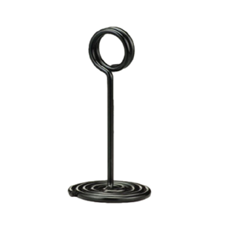 The American Metalcraft NSB4 number stand is engineered for professional foodservice use, featuring a resilient metal wire loop that allows for secure placement of menu cards or signs. Its 4-inch height and sturdy round base ensure stability on crowded tables or counters. The black finish enhances visual contrast and ease of maintenance, while the compact design facilitates seamless integration into various tabletop setups. Designed for quick setup and removal, it supports efficient workflow in busy hospitality environments.