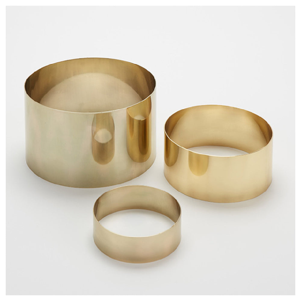 The RRG2 riser set offers versatile height and diameter options, facilitating layered displays and efficient space utilization. The stainless steel material ensures longevity and resistance to corrosion, while the satin gold finish provides a premium appearance. Designed for quick placement and removal, these risers support workflow optimization in fast-paced foodservice operations. The varying dimensions accommodate multiple product types, enabling seamless integration into existing display arrangements. Its round form and durable metal construction ensure stability during handling, cleaning, and long-term use.
