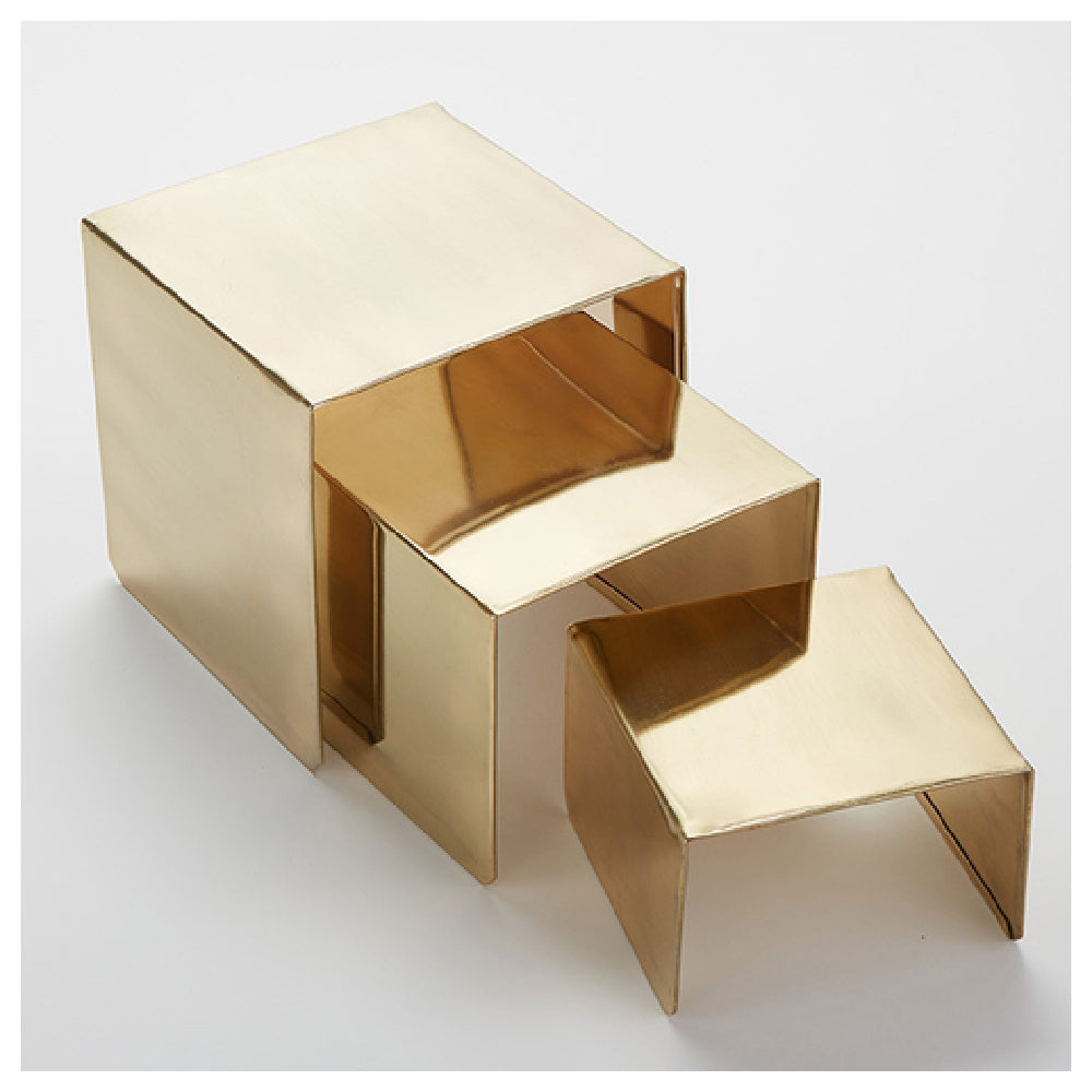 The RSG3 Riser Set offers multiple benefits for commercial kitchens and catering operations. Its stainless steel build ensures resistance to corrosion and ease of cleaning, supporting sanitation standards. The varied heights and square design facilitate flexible layering of food displays and product visibility, streamlining workflow. The satin gold finish enhances aesthetic appeal, while the heavy-duty construction withstands daily use in busy service environments. Designed for quick placement and stable stacking, this set optimizes display versatility and operational efficiency in high-volume settings.