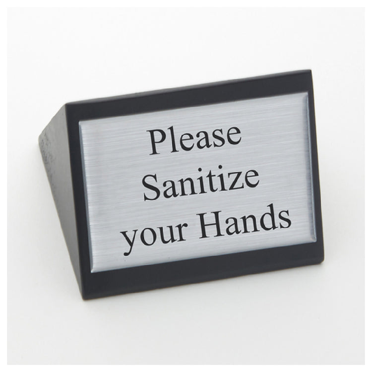 American Metalcraft SIGNSH 3 Inch Wooden Triangular Please Sanitize Sign Black Silver
