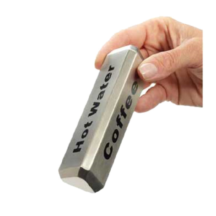 American Metalcraft, TTSB3, Beverage Sign, 4-3/4"L x 1-1/2"W x 1-3/8"H, triangular, 3-sided identifies: Coffee, Decaf, Hot Water, stainless steel, smooth satin finish