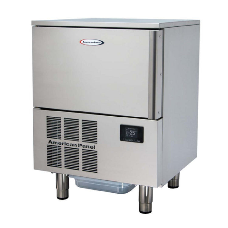 A commercial blast chiller freezer is a high-capacity refrigeration unit designed to rapidly cool or freeze food products to preserve freshness, texture, and safety. These units are typically installed in professional kitchens, laboratories, or food manufacturing facilities. The American Panel AP3BCF30-1-P combines advanced refrigeration technology with user-friendly controls, enabling precise temperature management. It features a self-contained system suitable for undercounter installation, supporting medium-volume food processing. Ideal for restaurants, caterers, and large foodservice operations, this blast chiller/freezer ensures quick turnaround times for batch cooling, helping to extend product shelf life and maintain food quality efficiently.