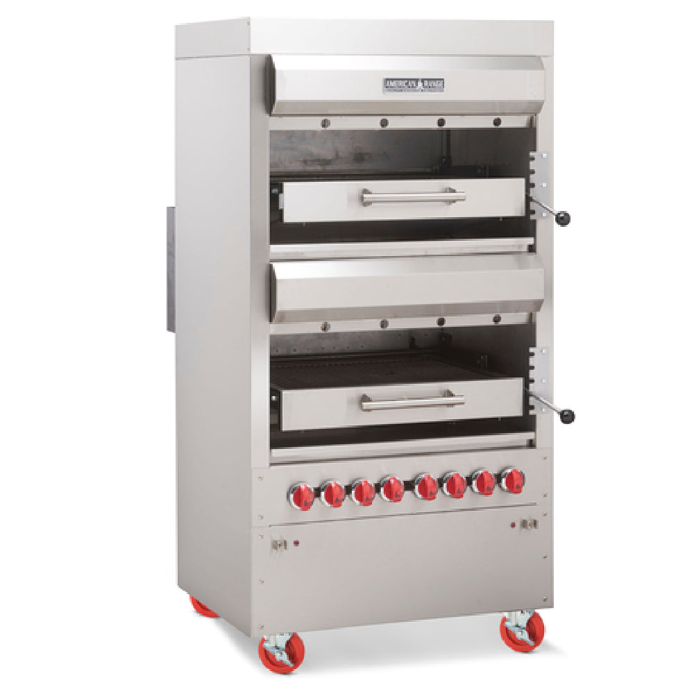 Why Choose American Range AGBU-2_LP Infrared Broiler for commercial kitchen applications? This model stands out with its double-deck design, durable stainless steel exterior, and high thermal output, enhancing cooking efficiency and longevity compared to standard units. Its robust construction and infrared technology optimize workflow, making it a reliable solution for high-demand foodservice operations, particularly those requiring fast, consistent broiling in a compact footprint.