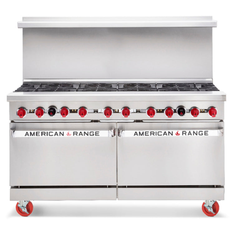 A commercial restaurant range is a heavy-duty cooking appliance designed for high-volume foodservice operations, featuring multiple burners, ovens, and cooking surfaces suited for continuous, intensive use. The American Range AR-48G-2B_LP Restaurant Range Gas 60" exemplifies this with its robust stainless steel construction, powerful open burners, and dual ovens, making it ideal for busy restaurant kitchens, hotel gastronomy outlets, and catering facilities seeking durable, restaurant-grade cooking equipment to support high throughput and versatile menu preparation.