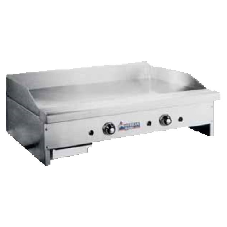 The American Range ARTG-160 operates on a 150,000 BTU (44.0 kW) gas supply, requiring standard commercial gas hookups to support its five U-shaped burners. Constructed with a stainless steel exterior, it measures 60 inches wide, 30 inches deep, and 10.5 inches high, with a total weight of 600 lbs, designed for stability and longevity. The 1-inch thick polished steel griddle plate offers superior heat retention and uniform cooking surface performance. The controls feature thermostats and pilots for consistent temperature management, making it suitable for installation in commercial kitchens with appropriate ventilation. The unit is shipped fully assembled, with easy access for cleaning and maintenance routines that ensure sanitation and operational efficiency. The unit's stainless steel construction contributes to compliance with food safety practices and makes it compatible with typical cleaning protocols for commercial restaurant equipment.