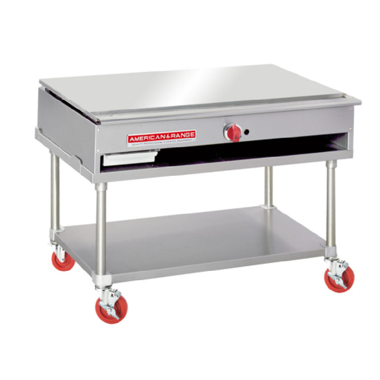 American Range, ARTY-60_LP, Culinary Series Teppan-Yaki Japanese Style Griddle, gas, 60" wide, 3/4" thick smooth polished steel griddle plate, manual control, removal grease can, grease trough & one piece rolled front, stainless steel exterior, 9.0kW, 30,000 BTU, cETLus, ETL-Sanitation, Made in USA