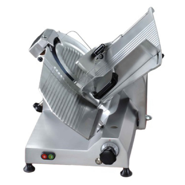 The AMPTO 350I Meat Slicer combines robust build quality and precise manual operation, ideal for medium-volume butcheries and delis requiring consistent slicing performance. Designed for operation in busy commercial kitchens, it ensures ergonomic workflow and sanitation with stainless steel and anodized aluminum construction.