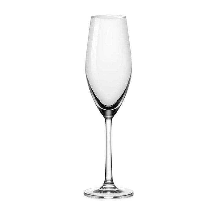 The Anchor Hocking 14164 flute glass features a polished, clear glass construction with a height of 8.85 inches, width and depth of 3.34 inches each, and a weight of approximately 12.96 lbs per case containing 24 glasses. Its material grade ensures resistance to frequent washing and thermal shocks typical in commercial settings. The glass maintains clarity and structural integrity during prolonged use, and its design supports easy handling and stacking within standard storage racks. The product’s manufacturing process emphasizes uniform thickness and smooth edges for safety and comfort during use. While specific electrical or cooling specifications are not applicable, the glass's durability supports efficient cleaning and handling workflows in busy foodservice environments. This model is particularly suited for service in upscale dining and catering venues where presentation quality and operational durability are essential.
