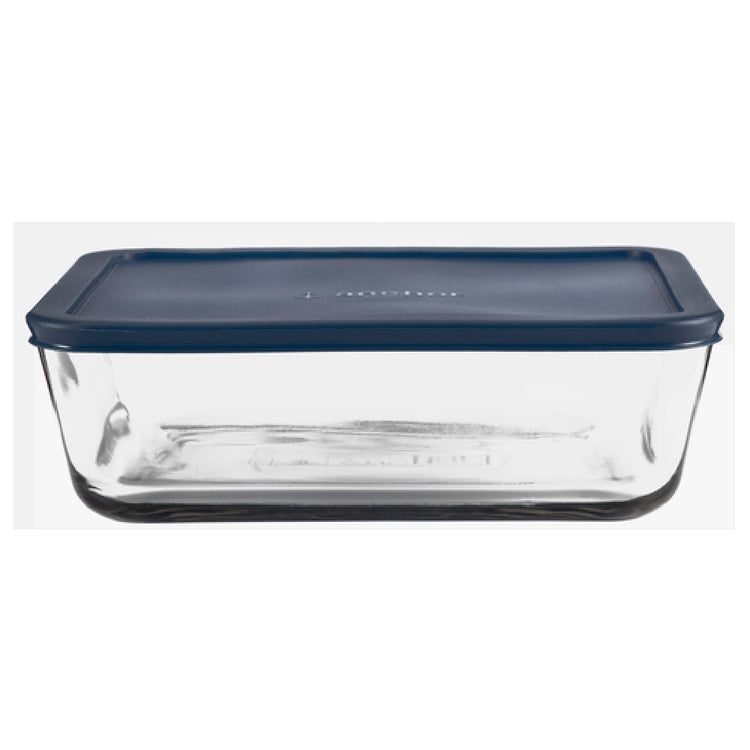 Anchor Hocking Foodservice, 85914L20, Food Storage Container, 11 cup, 9-7/8"L x 7-7/8"W x 3-1/8"H, rectangular, blue plastic lid, fully tempered glass, clear (2 each per case) (Packed By: Cs)