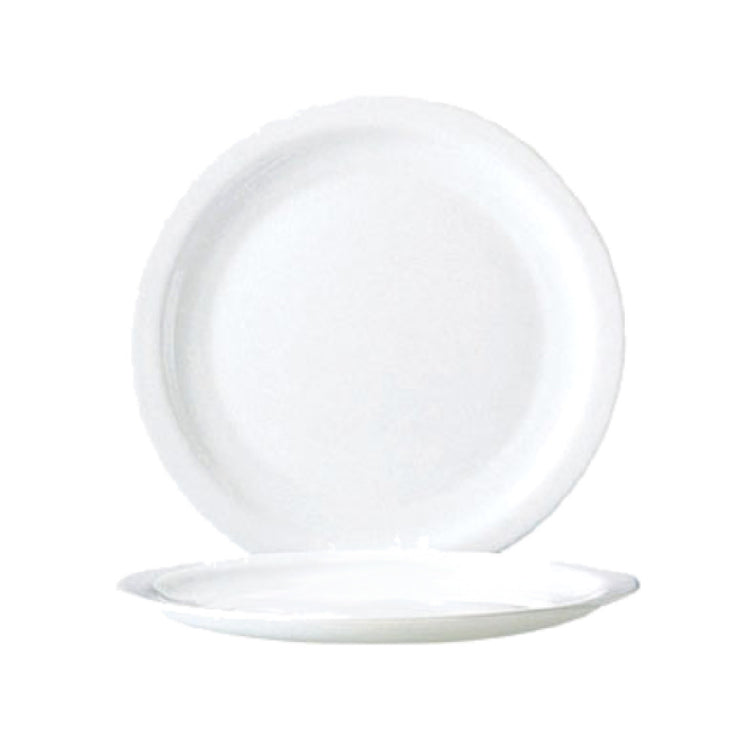 The Arc Cardinal N6393 Arcoroc Restaurant White Rim Plate, with a 10.25-inch diameter, is a commercial-grade dinnerware solution crafted from fluorosilicate opal glass. Designed specifically for foodservice environments, this round plate combines durability and elegance, making it suitable for high-volume restaurant, hotel, and catering operations. Its technical construction ensures resistance to chipping and thermal stress, while the white rim enhances presentation quality. Ideal for serving appetizers, main courses, or desserts in fast-paced settings, the N6393 plate maintains strength under rigorous use, supporting consistent sanitation practices and efficient workflow integration.