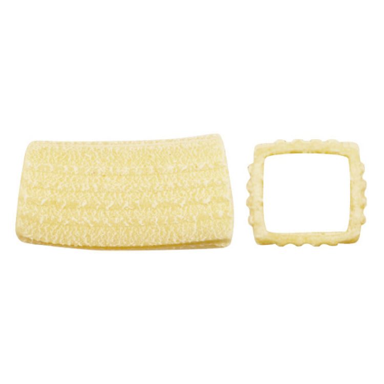 A commercial pasta die is a precision-engineered component used to shape and produce pasta in high-volume food manufacturing environments. Typically made from durable materials like bronze or stainless steel, these dies are mounted onto extrusion equipment to form specific pasta shapes such as rigatoni, fusilli, or macaroni. The Arcobaleno Pasta Equipment AEX30STELLA#392/15R extruder die specifically produces square rigatoni with ridges for texture, suited for large-scale pasta production in factories and artisanal kitchens. Its robust construction ensures consistent extrusion, shape accuracy, and longevity, making it ideal for continuous operation in industrial food processing settings.
