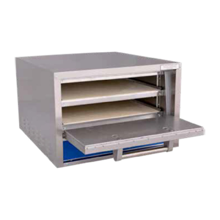 A commercial pizza bake oven is a specialized foodservice appliance designed for efficient, high-volume baking of pizzas and related products. The Bakers Pride P22-BL_208 HearthBake Series Oven provides precise temperature control within a durable, compact countertop form factor suitable for pizza shops, bakeries, and pretzel vendors. Equipped with brick-lined interiors and removable hearth decks, it ensures consistent baking results while supporting quick deck replacement for ongoing productivity. Its high-temperature range and robust construction make it an optimal choice for establishments requiring reliable, restaurant-ready baking performance.
