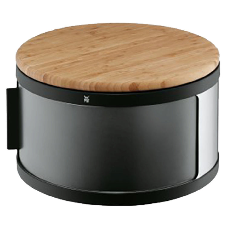 BauscherHepp 06.3445.6030 12-3/5 Inch Round Bread Bin with Bamboo Cutting Board Stainless Steel Glass Black