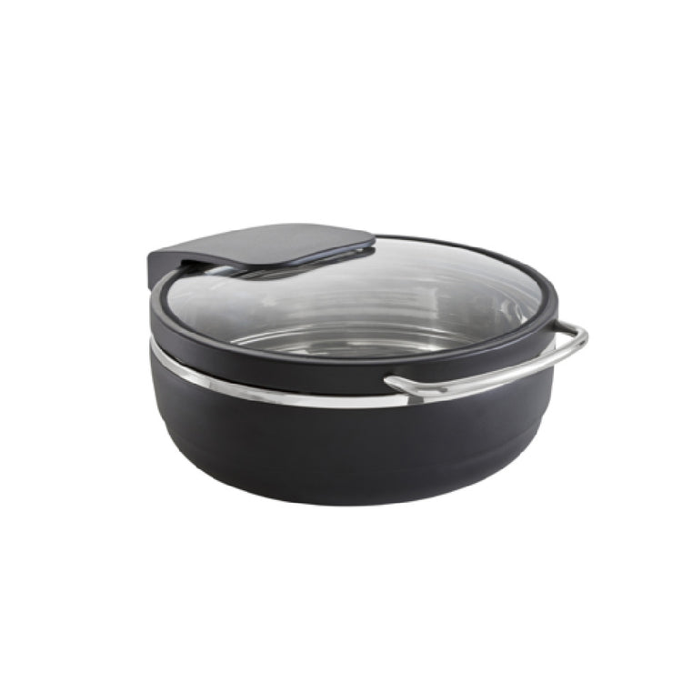 BauscherHepp 57.0001.9100 7 Inch Round Electric Chafing Dish with Hinged Cover Stainless Steel Black and Silver