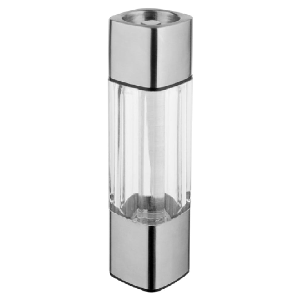 The BauscherHepp 57.0209.6040 Salt/Pepper Mill 2" x 2" x 7-11/16"H Square is a commercial-grade condiment dispenser designed for professional foodservice environments. Crafted from 18/10 stainless steel, glass, and acrylic, this square mill offers durability combined with precise functionality. Its compact 2" x 2" footprint and adjustable height up to 7-11/16" make it suitable for compact counters, tables, and buffet lines. Engineered for consistent salt and pepper dispensing, it addresses workflow efficiency and sanitation in busy kitchens and hospitality settings while maintaining a sleek, restaurant-ready appearance. The technical configuration ensures reliable performance in high-use scenarios involving seasoning distribution at moderate throughput operations.