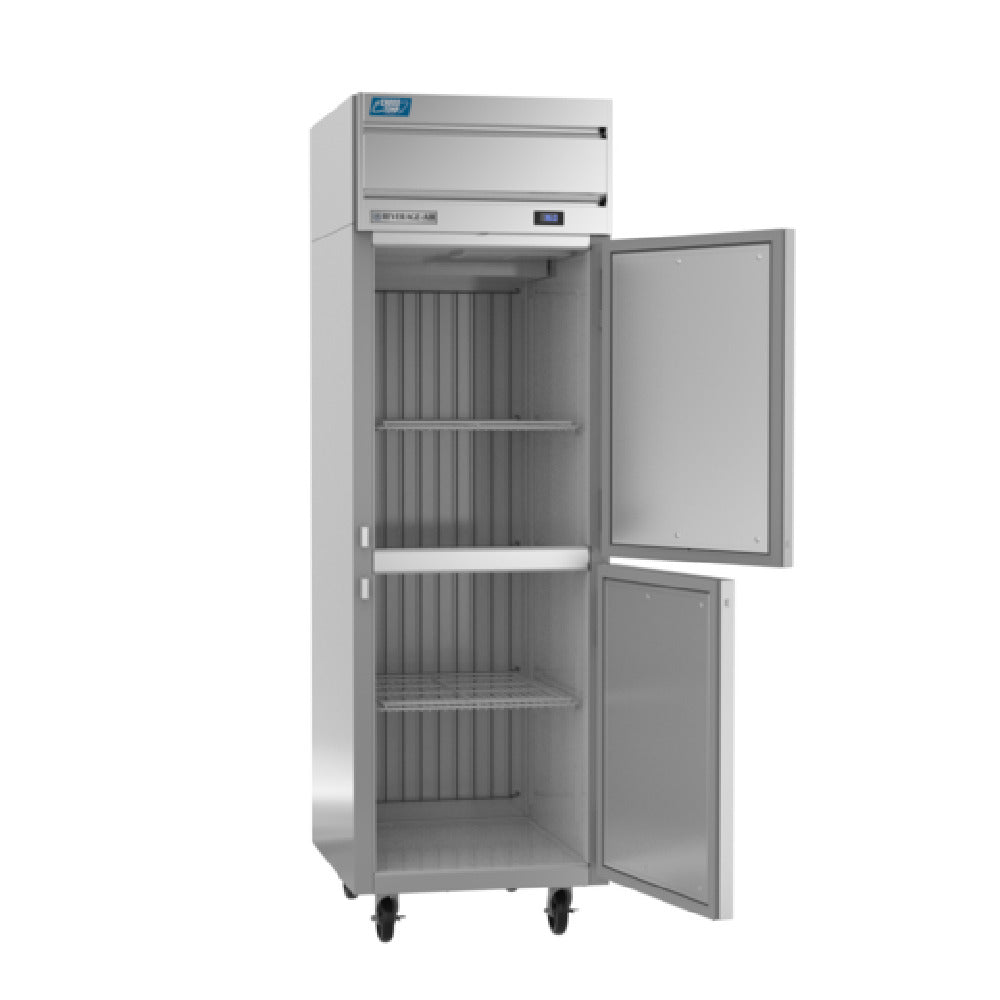 The Beverage Air CT1HC-1HS Cross Temp® Convertible Refrigerator/Freezer Reach-in is a commercial-grade refrigeration unit designed for versatile foodservice applications. Engineered with top-mounted self-contained refrigeration and a 23.1 cu. ft. capacity, it offers precise temperature control for both refrigeration and freezing needs. Its one-section design features two right-hand hinged solid doors with locking mechanisms, enhancing security and ease of access. Constructed with stainless steel front and sides, along with an aluminum interior, this unit ensures durability and easy sanitation. Equipped with electronic controls, a digital display, and LED interior lighting, it simplifies operation and monitoring, making it suitable for mid-volume kitchens and specialty foodservice environments requiring flexible cold storage solutions. Its advanced refrigeration technology utilizes a variable speed compressor, expansion valve, and hydrocarbon R290 refrigerant, providing energy-efficient performance at 4/5 HP.