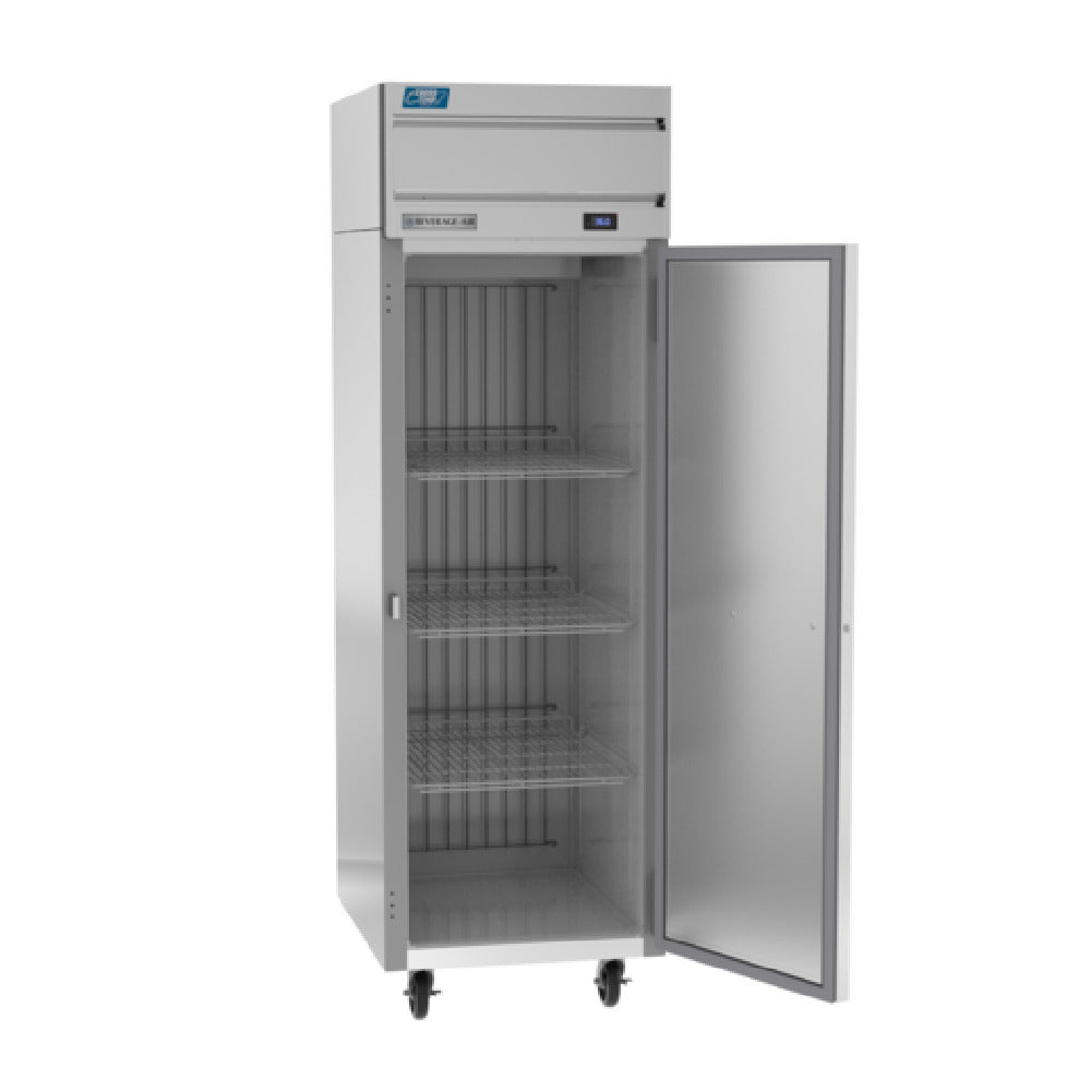 The Beverage Air CT1HC-1S Cross Temp® Convertible Refrigerator/Freezer is a commercial-grade, single-section reach-in unit designed for flexible food storage in professional foodservice environments. Featuring top-mounted self-contained refrigeration, this model provides precise temperature management with an electronic control system and digital display. Its 23.1 cu. ft. capacity supports versatile operation between refrigeration and freezing modes, optimized for mid-volume applications such as restaurant kitchens and convenience stores. Constructed with a stainless steel front and sides, aluminum interior, and durable shelves, it balances longevity with ease of cleaning. The unit’s specification includes a 4/5 HP variable speed compressor, expansion valve, and R290 hydrocarbon refrigerant, ensuring energy-efficient cooling performance with reliable operation.