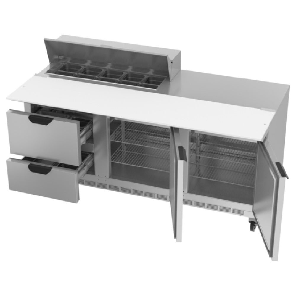 Built with high-quality stainless steel and efficient cooling, the Beverage Air SPED72HC-10C-2 is suited for medium-volume food prep in commercial kitchens, providing reliable refrigeration and accessible storage for fast-paced foodservice environments. Model number SPED72HC-10C-2 by Beverage Air ensures durable performance during daily operations.