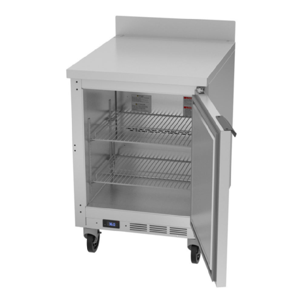 The Beverage Air WTR24AHC Worktop Refrigerator is a commercial-grade refrigeration unit designed for precision storage and efficient workflow integration in foodservice environments. This 24-inch wide, single-section refrigerated counter features a self-contained, rear-mounted hydrocarbon refrigeration system utilizing R290 refrigerant, delivering reliable cooling performance. With a 5.16 cubic foot interior capacity, it is equipped with (1) solid door and two adjustable shelves, optimizing organized storage for perishable ingredients. The stainless steel front, top, and sides provide durability and ease of sanitation, while the aluminum interior improves corrosion resistance. A 2-1/2-inch thick top and sides contribute to insulation efficiency, supporting consistent temperature maintenance within a safe operating range. An interior thermometer allows for precise monitoring, essential for maintaining food safety standards, and the unit’s compact design facilitates installation in moderate-volume kitchen settings where dependable refrigeration is critical for food quality preservation.
